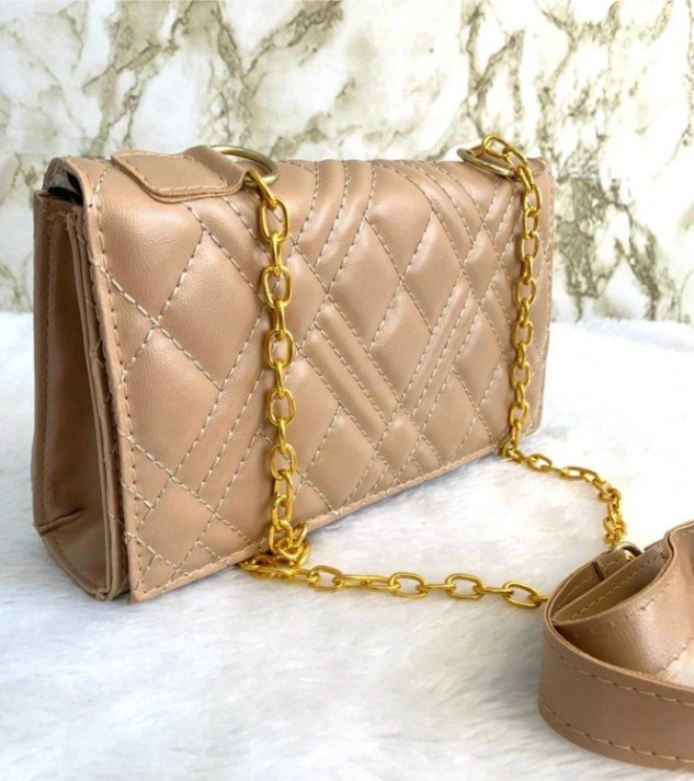 Meta title: Bolsa Tiracolo Bege Nude com Matelassê e Corrente Dourada